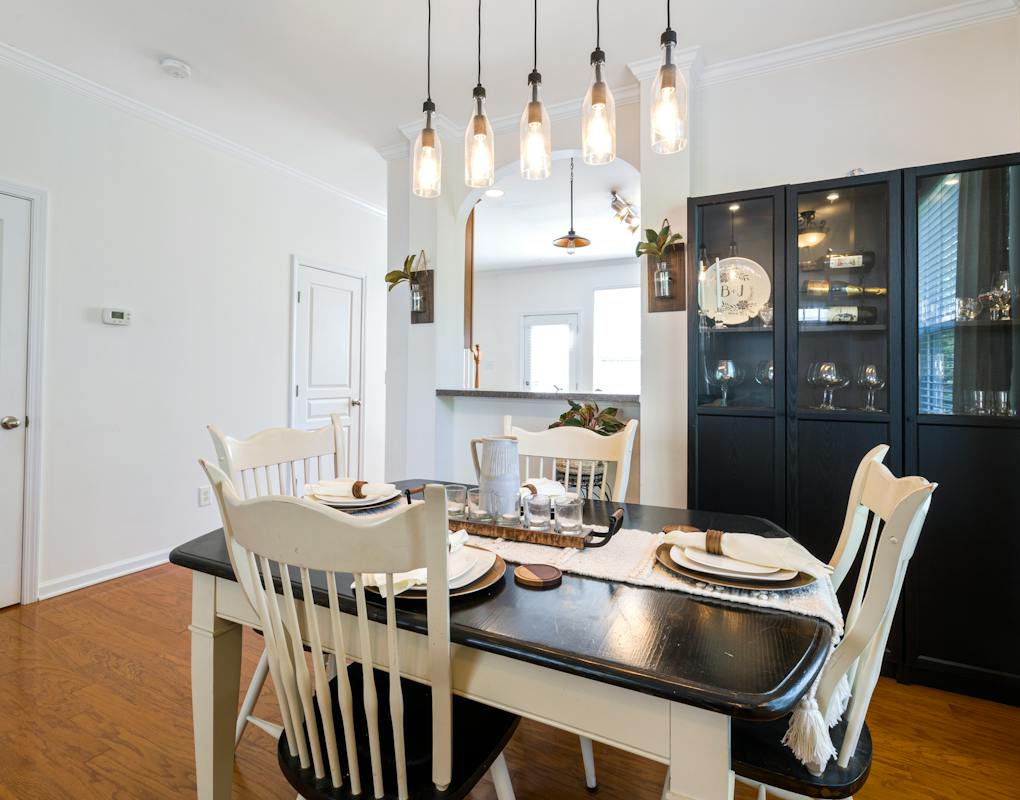 Illuminate your dining area with carefully chosen lighting fixtures to set the mood for different occasions. Pendant lights or a statement chandelier above the dining table add a touch of sophistication. Consider dimmable lights to create a cozy ambiance during intimate dinners and brighter lighting for lively gatherings.